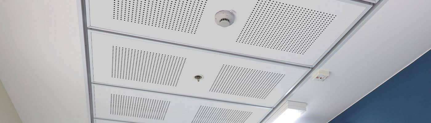 USG ME gypsum ceiling tiles represent the finest in ceiling design, offering the most popular patterns with a wide range of perforation designs and acoustic performances. Solid gypsum tiles and perforated gypsum tiles provide a powerful visual statement with their ability to be installed in just about any type of edge detail with excellent mold and sag resistance, fire resistance, and durability.
