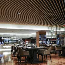 • Special design - metal baffle integrated with linear strip ceiling to improve the space aesthetic and acoustic performance.
